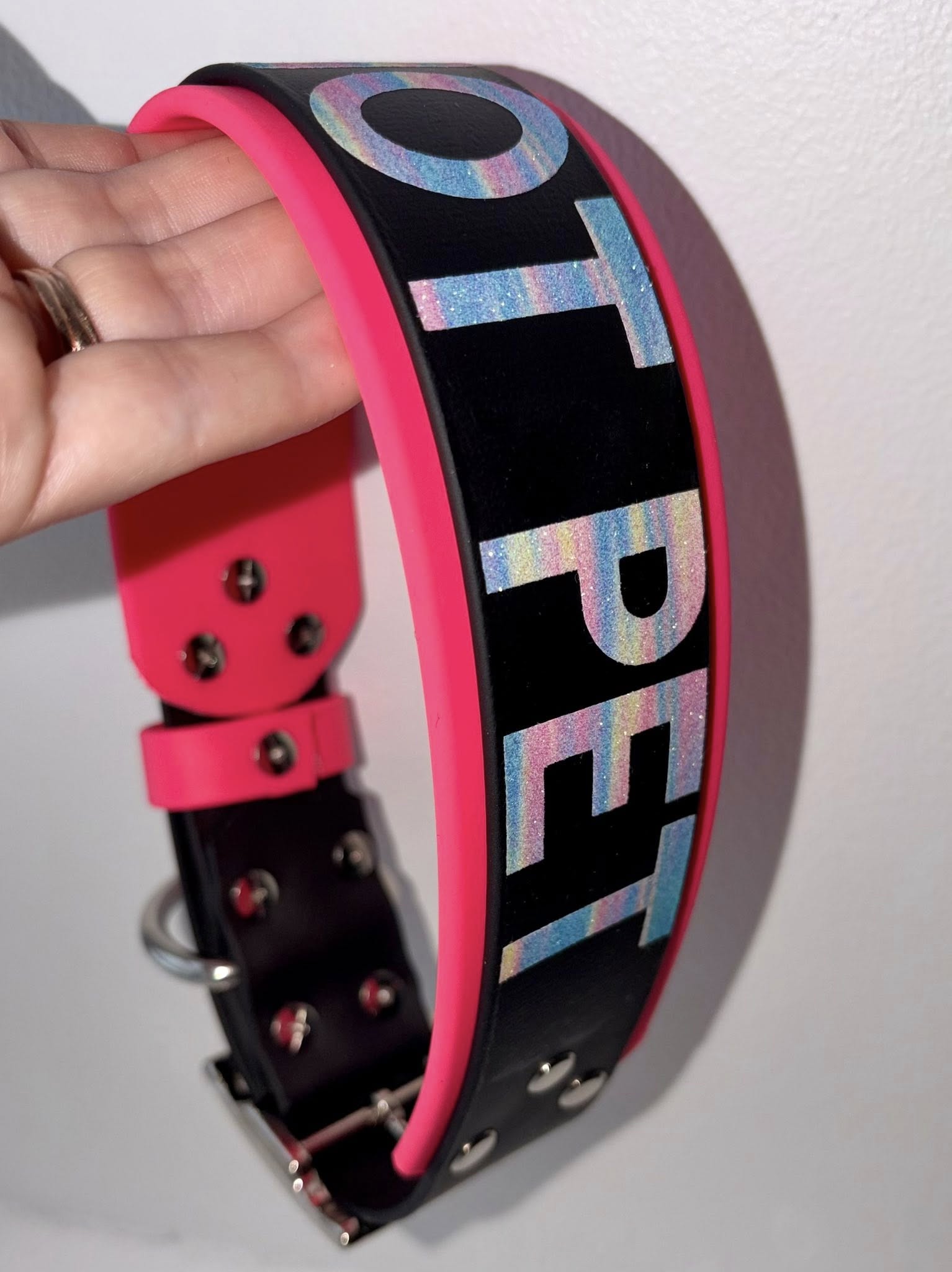 Our 2” Double Layer BioThane Collars are designed for strength, comfort, and bold style. Featuring two layers of durable BioThane for added structure and eye-catching contrast, these collars are perfect for larger breeds, strong pullers, or anyone who loves a thick, statement collar that holds up to everyday wear.